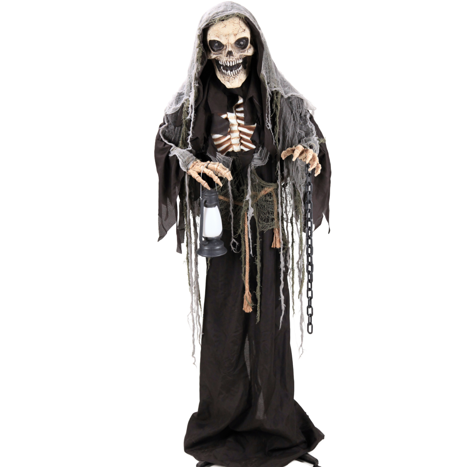 Skeleton Grim Reaper Animatronics Holding Lantern Info: